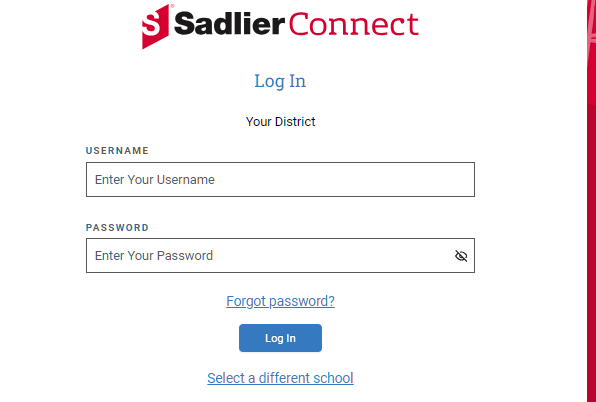 | Log in Log in using the username and password provided to you by the Sadlier Connect team. |