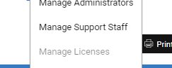 | Manage school access for additional users Whether you are integrated and have users not present in the SIS or you have users who need admin access to Sadlier Connect, as the District Admin, you can add the user using the Manage Support Staff function Support Staff are added at the school level by clicking Manage Support Staff from the gear icon. You can edit or add staff accounts. When creating a new support staff account, use new credentials not used by any user in the system. The email address does not have to be validated. You can add the support staff account to one or more schools. Support Staff log in at the District Level page. |
